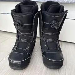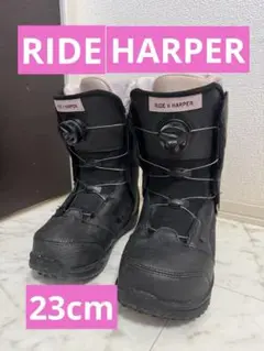 RIDEのホワイトとピンクのスノーボードブーツ、バックル付きで快適なフィット感。