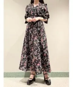 SNIDEL 花柄フリル付きロングドレス