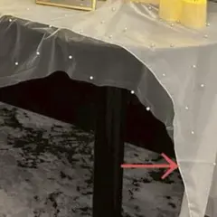チェック柄のテーブルクロス、約140cm x 100cmのサイズで、ポリエステル製。