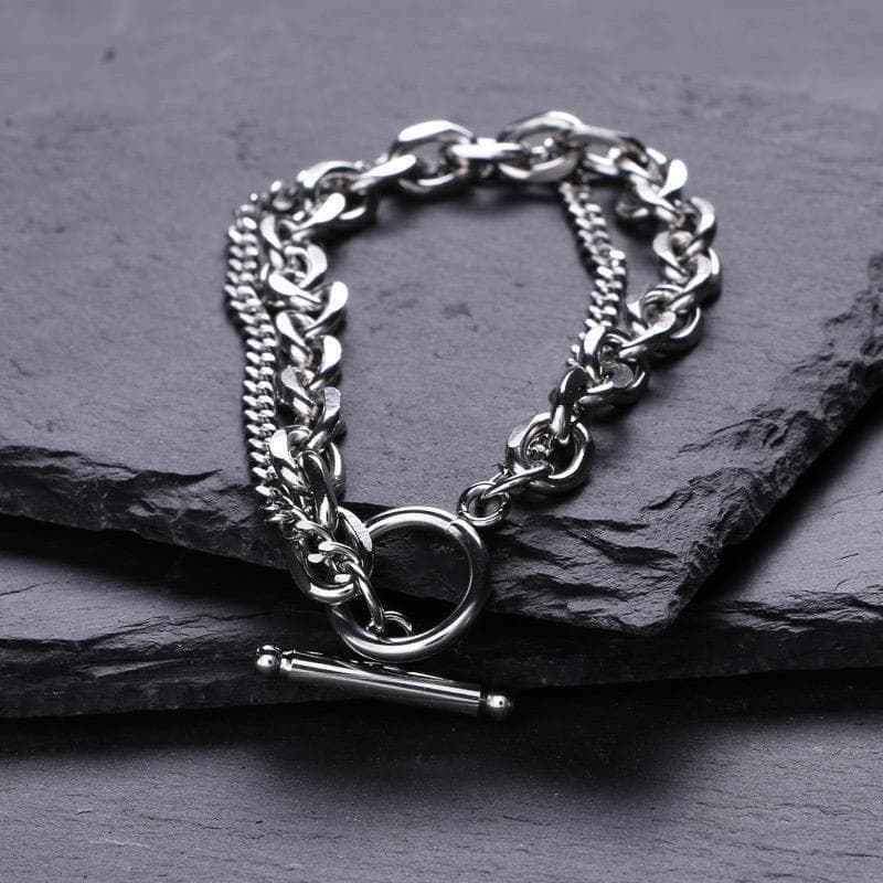【売れ筋商品】ダブルチェーン シルバー ブレスレット メンズ アクセサリー