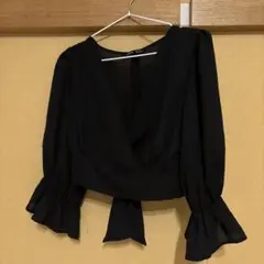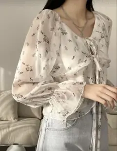 SHEIN ソリッドシャツパフスリーブボタンブラウス