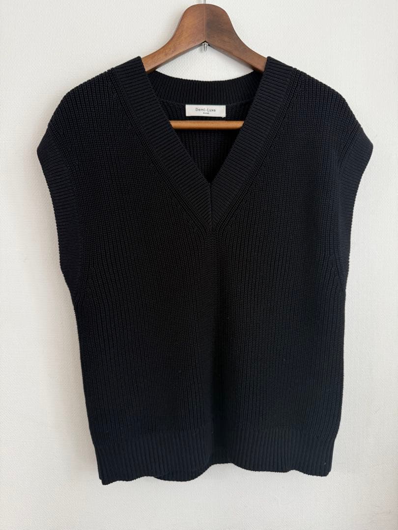 Demi-Luxe ブラック Vネック ニットベスト