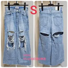 GYDA ダメージ加工ダークブルーデニムパンツXS