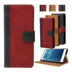合成皮革製の青い手帳型ケース、3つのカードポケット付き。