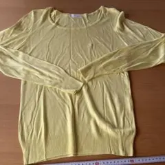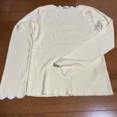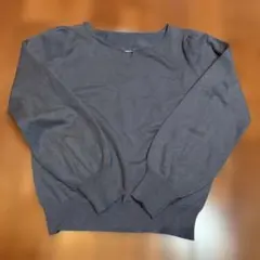 ネイビー/ダークブラウンのリボン付き長袖ニットセーター。
