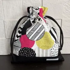 巾着袋 給食袋 小物入れキャンプ柄くすみブルー 入園 入学 通園 通学