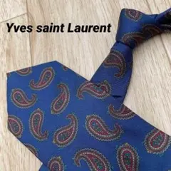 【美品】 サンローラン ネクタイ ペイズリー ストライプ ネイビー シルク