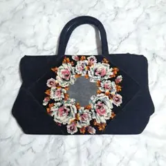 レディース トートバッグ ハンドバッグ 肩がけ 花柄 ブラック 黒 フォーマル