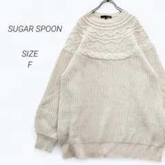 ビッグシルエット 透かし編みアイボリー ニットセーター 長袖