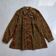 昭和レトロ総柄シャツ ペイズリー柄シャツ 総柄長袖シャツ ダークトーン 古着