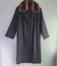 ロングコート 茶色 毛95% ファー付き