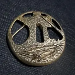 葉の模様が美しい鉄製の円形鍔。