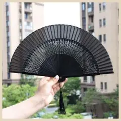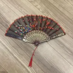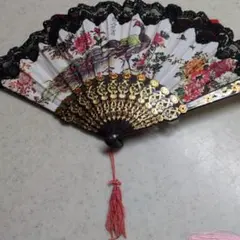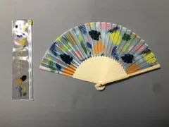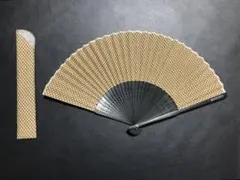 羽根模様のモノクロ扇子、刺繍のケース付きで、和装小物として最適。