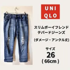ストレートデニム、バックポケット付きでシンプルなデザイン。