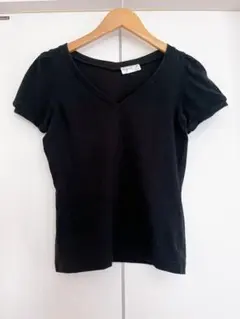 agnis b. ブラック フレンチスリーブ Tシャツ