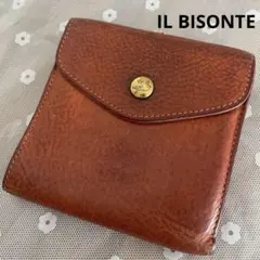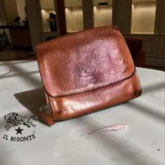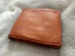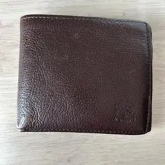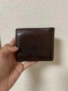 ダークブラウンのレザー製二つ折り財布、カードポケット付きで実用的。