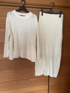 ニットワンピースとプリーツスカートのセットアップです