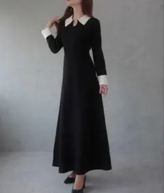 袖口と襟の配色デザインがおしゃれなワンピ。