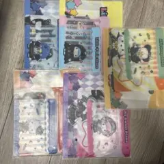 ハロウィンテーマのハローキティキャラクターグッズセット、スマホストラップ、ステッカー、アクリルキーホルダーが含まれています。