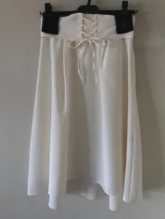 ブラウンのフレアスカート、ひざ丈で花の刺繍が施されています。