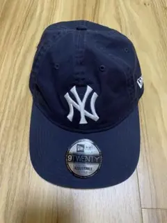 ネイビーのLAロゴ入りベースボールキャップ、調整可能なバックストラップ付き。