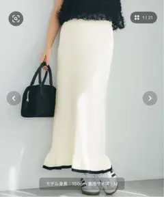 オリーブグリーンのテクスチャーのあるタイトスカート。