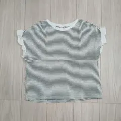 100アプレレクール 白 パフスリーブTシャツ フラワーボタン クロスバック