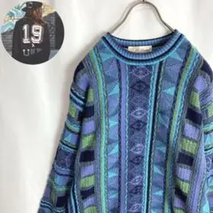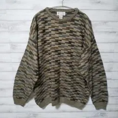 【希少】長袖ニット セーター イタリア製 L ヴィンテージ 総柄 ウール 秋冬