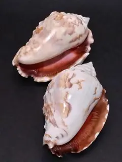貝殻の標本 ネズミダカラ(タカラガイ科)とシュスヅツミ(ウミウサギ科)