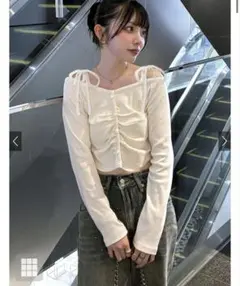 綺麗な鎖骨を覗かせたネックラインで抜け感を増し、ヘルシ 一な雰囲気に。