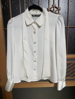 ZARAホワイト 長袖シャツ 青色刺繍