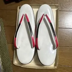 シンプルな黒の合成樹脂製和装履物、使用感あり。