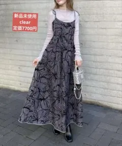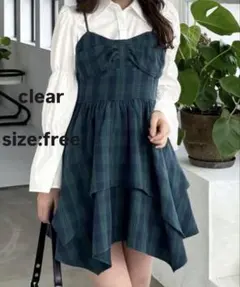 3079【clear】キャミソールロングマキシワンピース マーメイド チェック