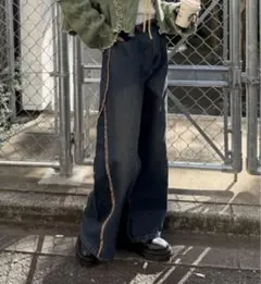 ダブルクローゼット デニムパンツ ストレート カジュアル ゆったり コットン F