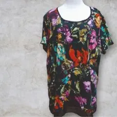 SONOMA 花柄 カットソー L マスタードイエロー 半袖 総柄 春夏