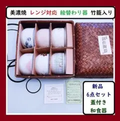 未使用!美濃焼 茶碗蒸し椀 三色十草 食器 6点セット