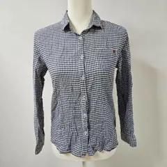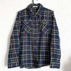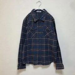 青・赤・白のチェック柄の長袖フラネルシャツ。カジュアルなスタイルに最適。
