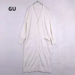GUのVネックカーディガンになります。落ち着いたくすみグリーンカラーが特徴で、シンプルながらもおしゃれな雰囲気を演出してくれる一着です。無地デザインなので様々なコーデに取り入れやすく、季節の変わり目にも重宝するアイテムです。