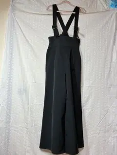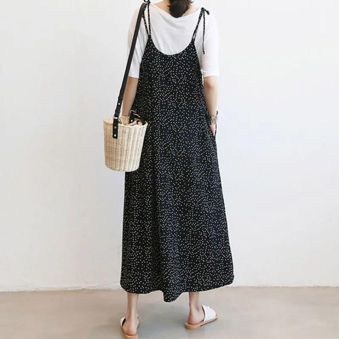 サロペット ドット 黒 オールインワン 体系カバー ガウチョパンツ キャミパンツ