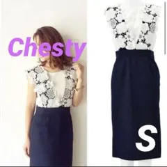 チェスティらしいフェミニンさを程よく取り入れたノースリーブデザインで、甘くなりすぎず、落ち着いた印象で着用できる一着です。