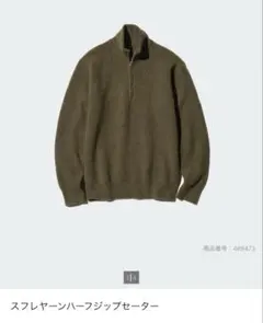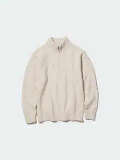 UNIQLO スフレヤーンハーフジップセーター Lナチュラル