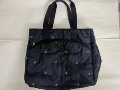 リップ刺繍が特徴のホワイトバッグ、内部にファスナー付きポケット2つあり。