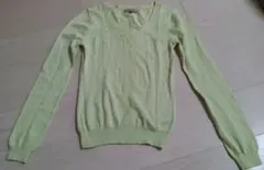 リブ編みのラベンダーカラーで、スカラップネックが特徴の長袖ニット。