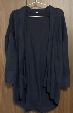柔らかい生地のライトグレー七分袖カーディガン。