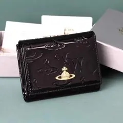 ヴィヴィアンウエストウッド エナメル がま口三つ折り財布 ブラック