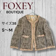美品 フォクシー クチュールニットジャケット ツィード 42 ベージュ