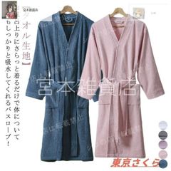 花柄デザインのタオル生地ローブ、右側ポケット付きで快適な着心地。
