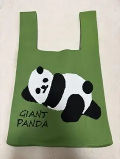 可愛いパンダ柄のニットトートバッグ。