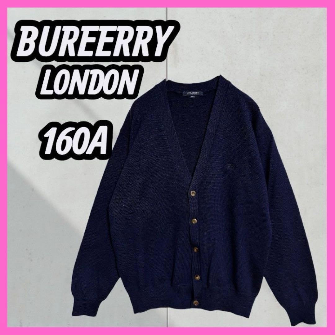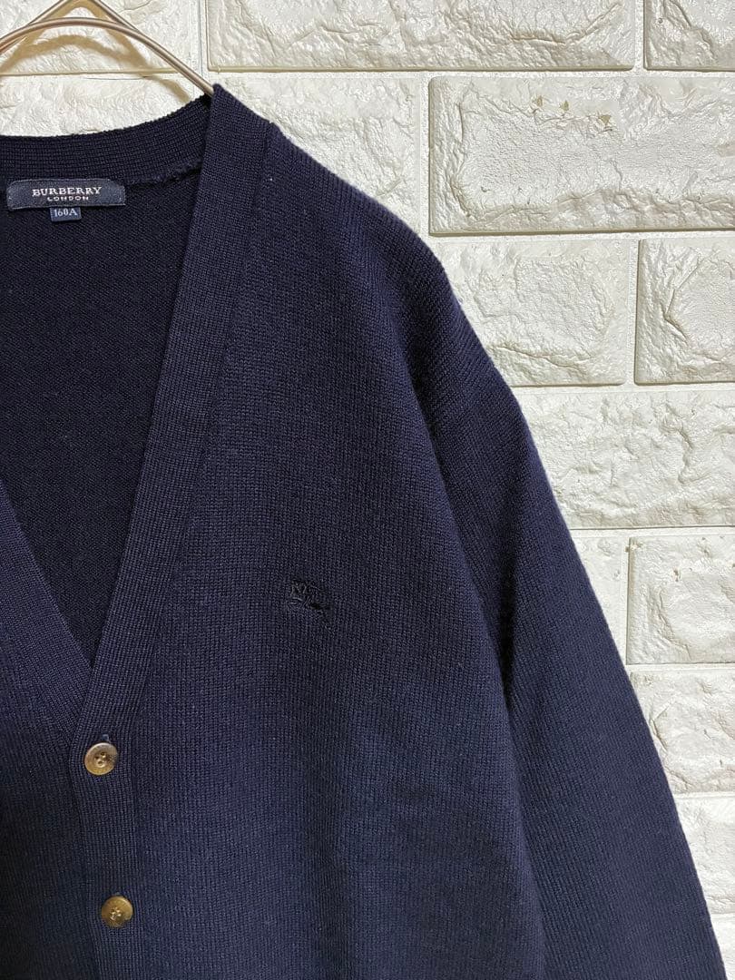[BURBERRY] ウール 長袖 スクールカーディガン ネイビー 無地 刺繍