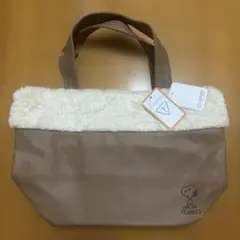スヌーピーのコミックデザインが特徴のピンクのトートバッグ。